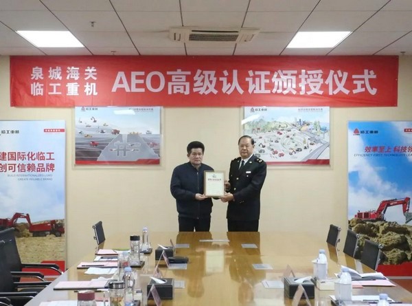1月18日,泉城海关杨炳文关长一行莅临350vip浦京集团(股份)重机股份有限公司,向350vip浦京集团(股份)重机颁发AEO高级认证企业证书,350vip浦京集团(股份)重机董事长于孟生及相关负责人参加颁证仪式。
